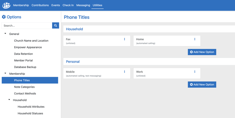 Empower provides a flexible way to manage phone contact information at both the Household and Personal levels. This guide will walk you through how to customize phone types and titles to suit your church's specific needs.